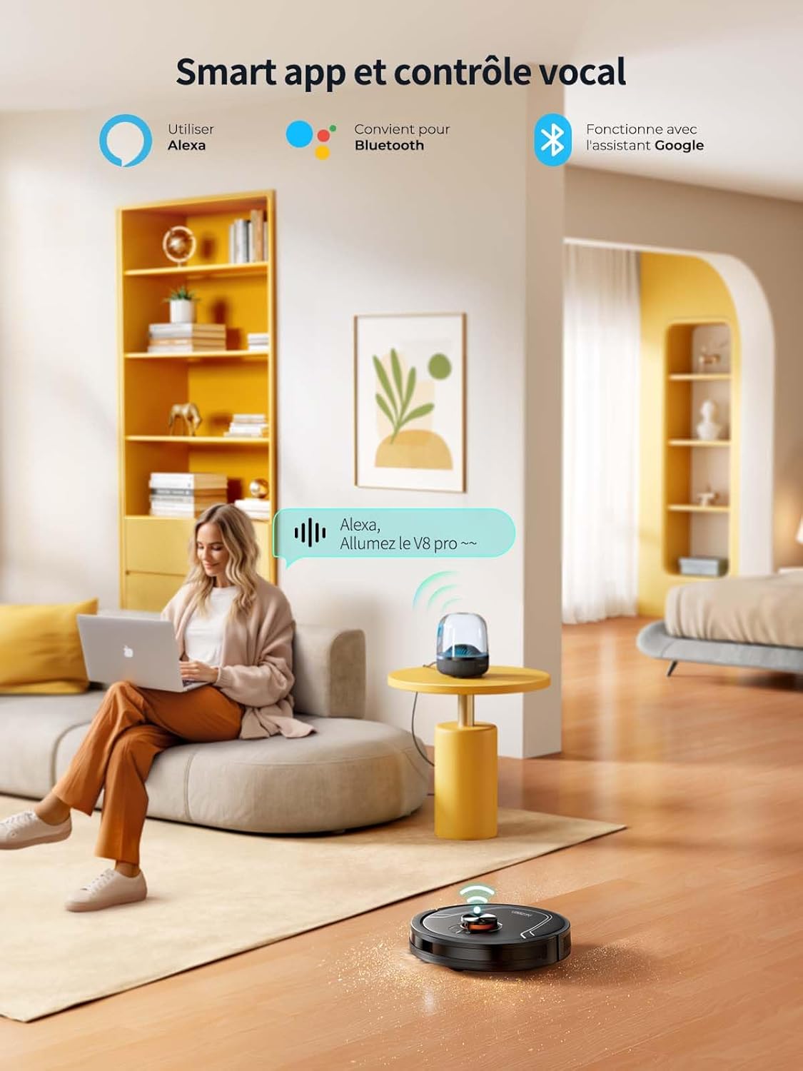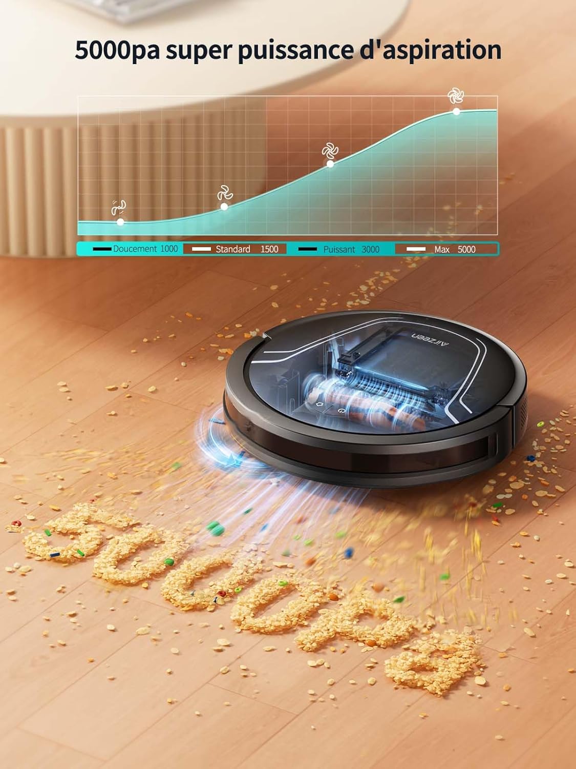 Airzeen Robot Vacuums and Mop, 5000Pa Ultra Strong Suction, Lidar Navigation, Multi-Floor Mapping, 3-in-1 Robot Vacuums, APP/Alexa/WiFi, Ideal for Pet Hair, Carpet and Hard Floors(V8 Pro)