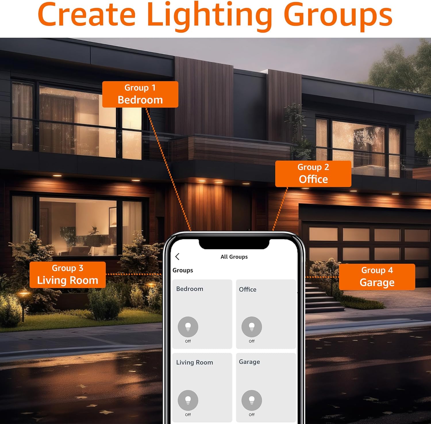 GROUP CONTROL: Create groups in the Alexa app to combine lights together, allowing you to control lights by each room, or all of your home lights with a single voice command or via app. When it’s time to sleep, just say “Alexa, turn off the bedroom” OR use the Alexa app to turn off the bedroom lights at once.