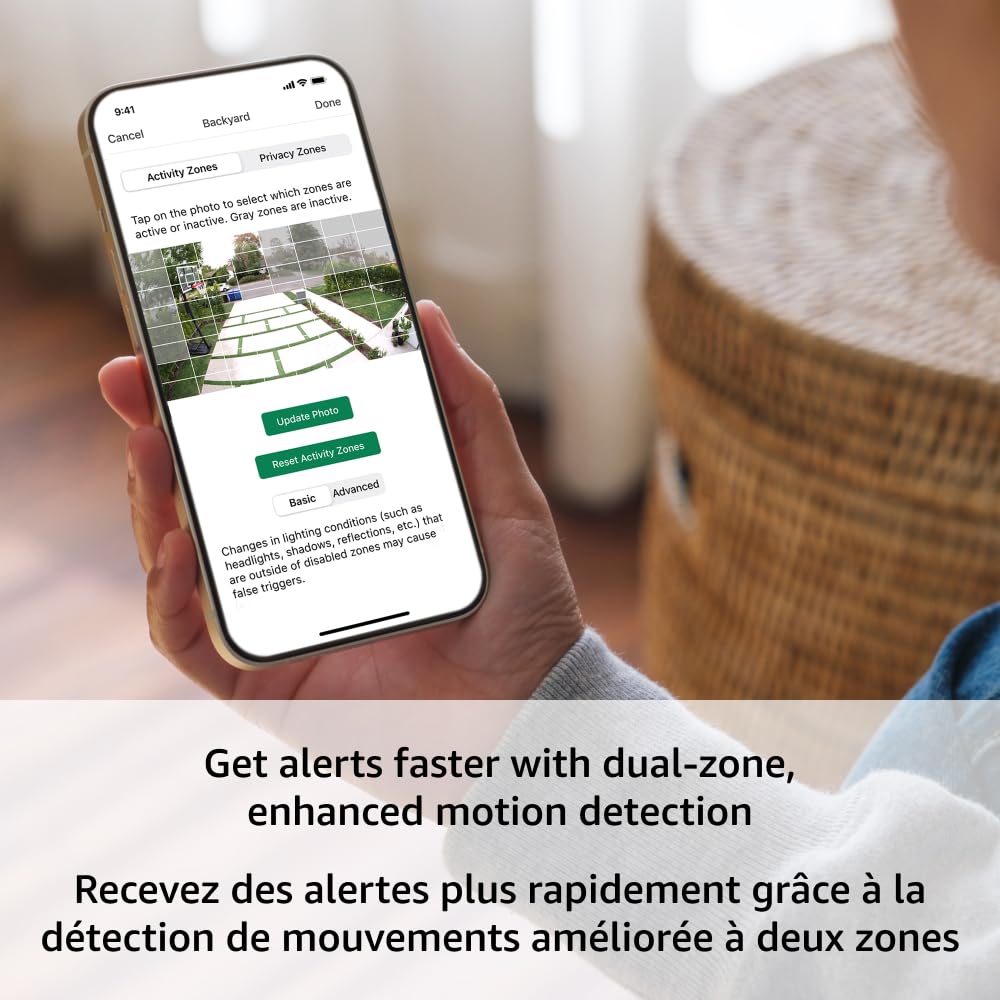 Enhanced motion detection — Be alerted to motion faster from your smartphone with dual-zone, enhanced motion detection.