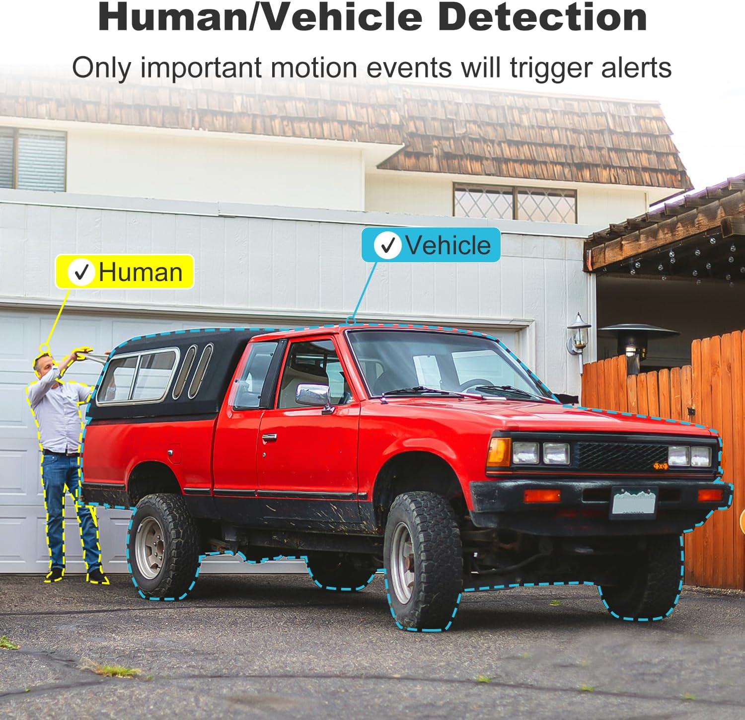 【Humanoid & Vehicle Detection】 Genbolt WiFi Security Camera Outdoor smartly customizable human & vehicle motion detection allows you to set 1-4 specific detection zone for your WiFi camera outdoor to detect motion and sends you real-time accurate alerts, thus preventing false alarms.