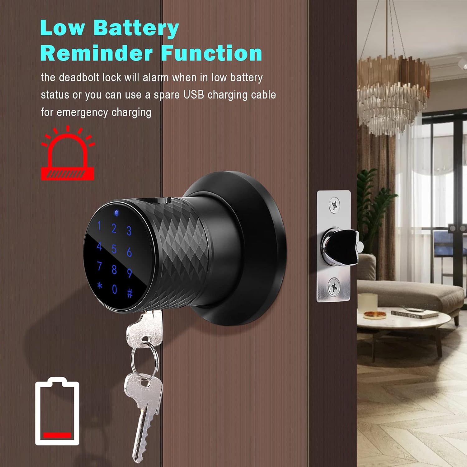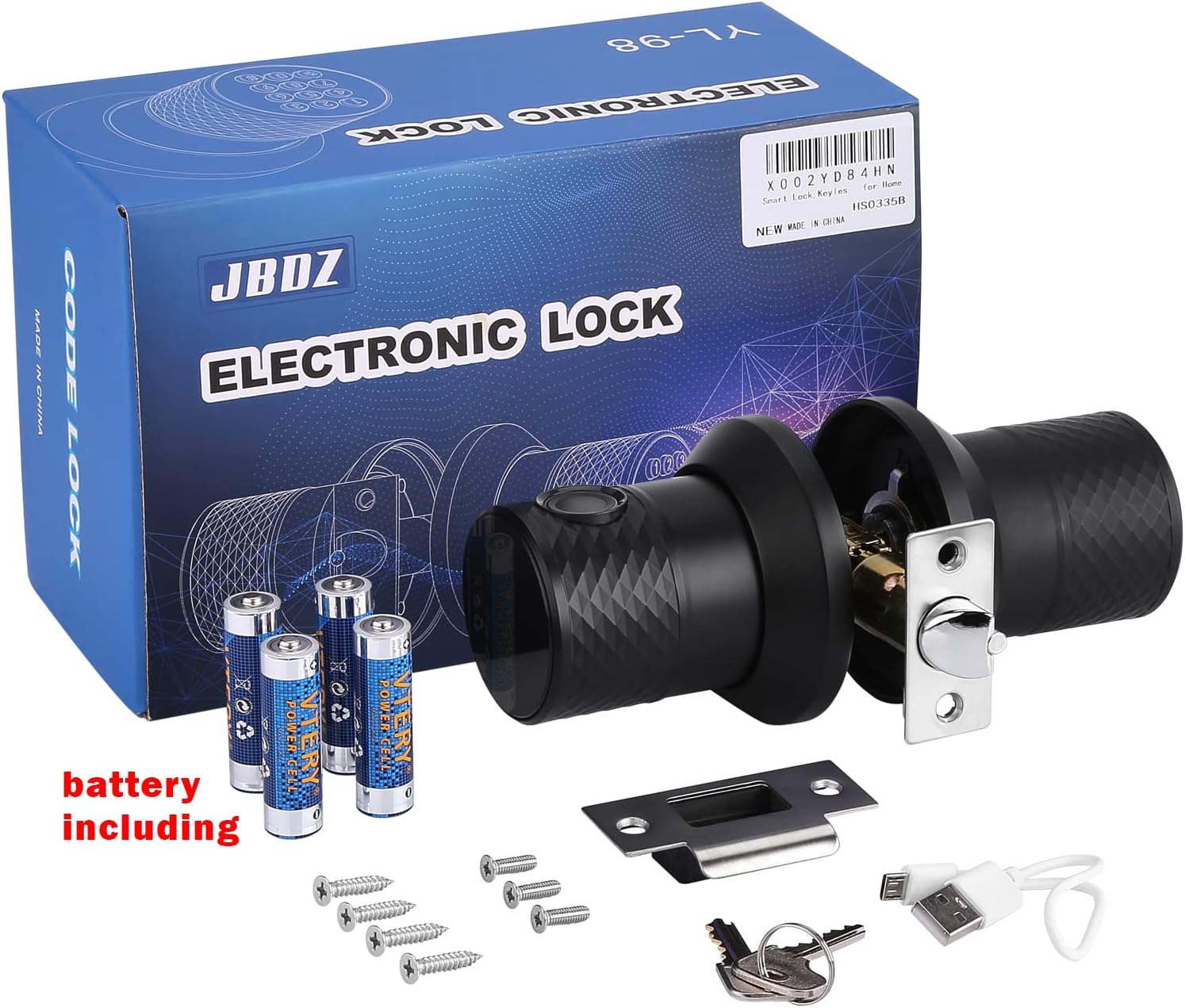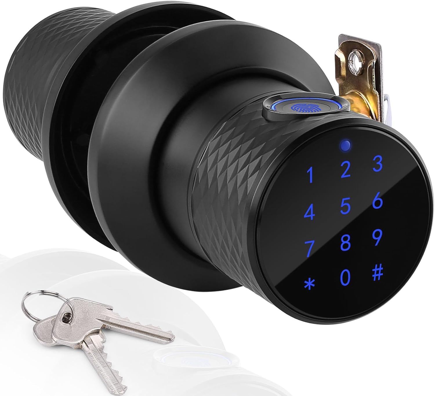 FITNATE Keyless Smart Fingerprint Door Knob, Bluetooth Digital Code Deadbolt with Keypad, Work with Echo, Support Tuya System’s Gateway, Smart Lock for Bedroom, Apartment, Office, Easy to Install