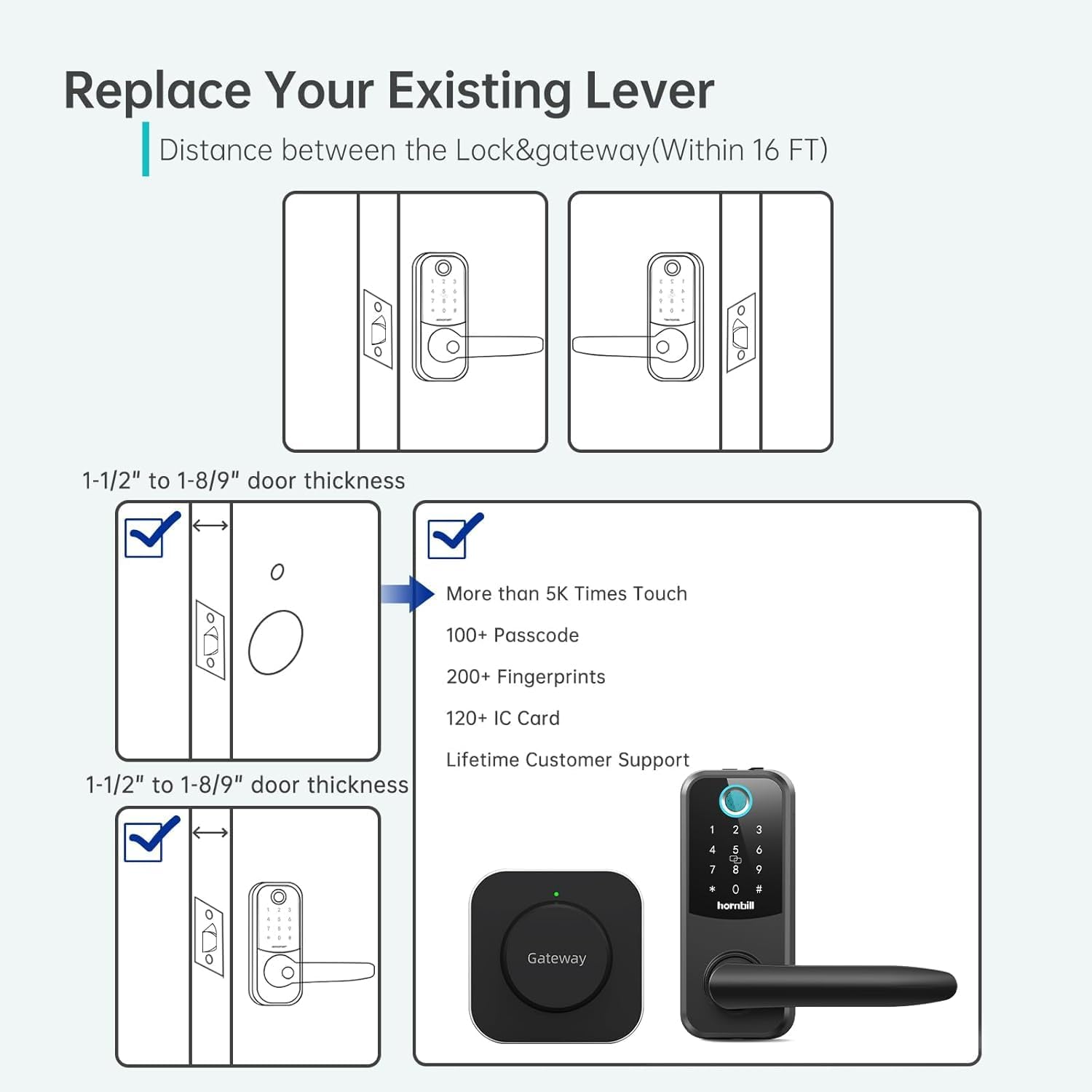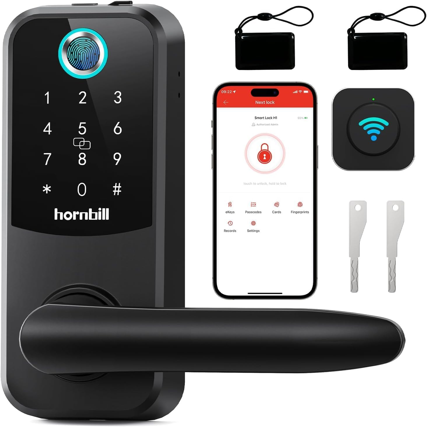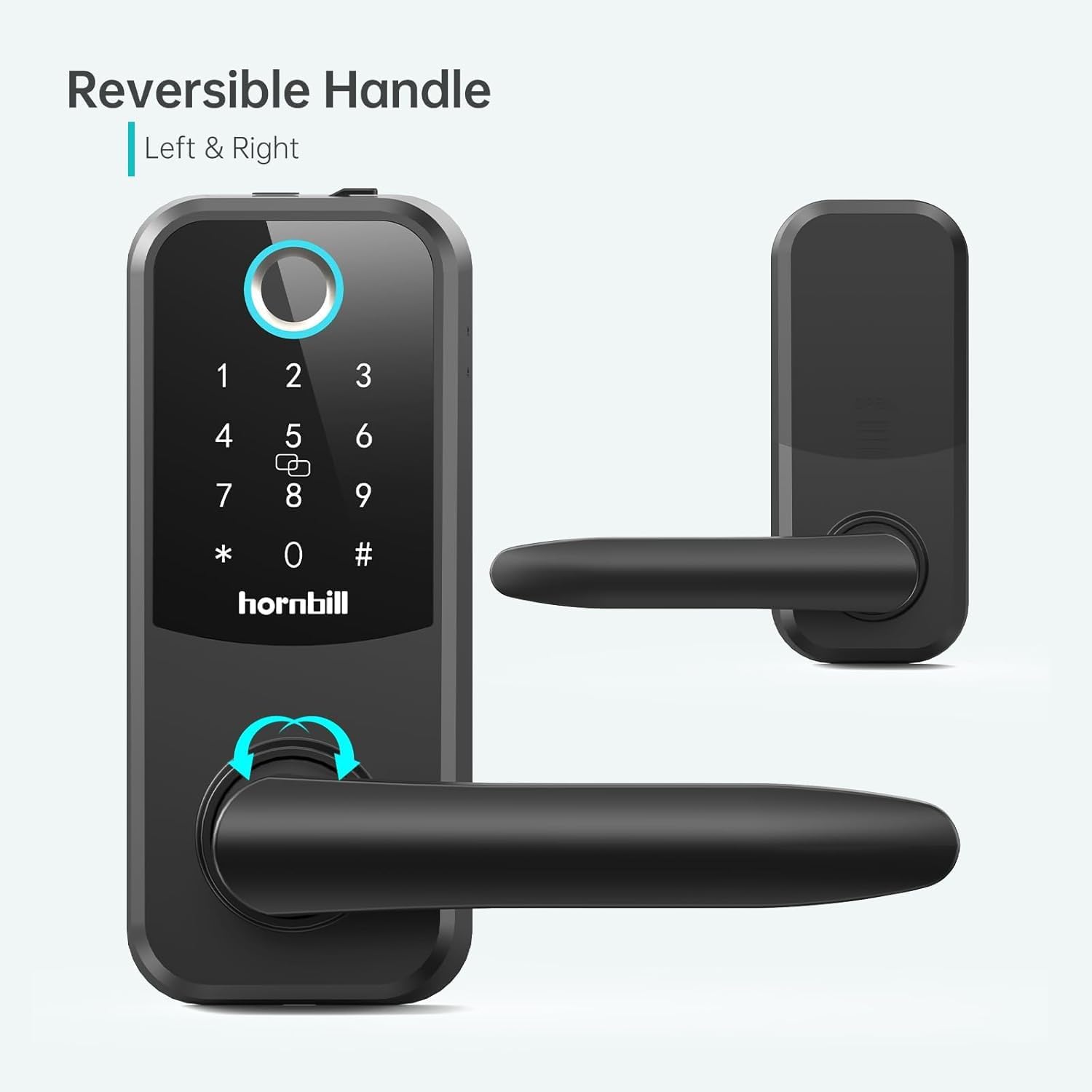 Hornbill Fingerprint WiFi Smart Lock, Keyless Entry Door Lock with Handle, Smart Deadbolt for Front Door w/Lever, Digital Keypad, Biometric, Auto Lock, APP, Codes, eKey, IC Card, Alexa