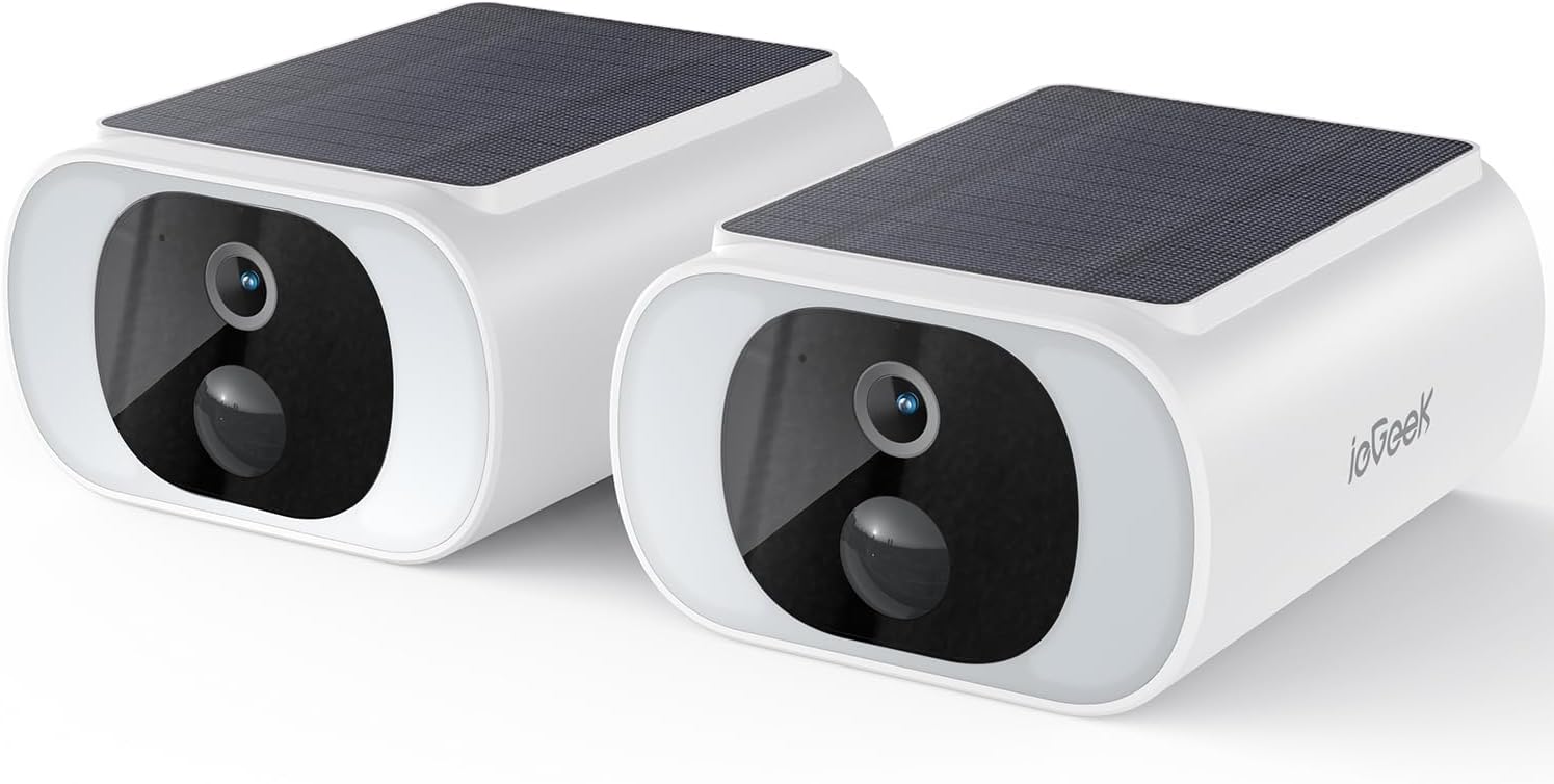 ieGeek 2K Solar Security Cameras Wireless Outdoor,Always Powered,Waterproof Camera Surveillance Exterieur for Home Security with Smart Motion Sensor,Color Night Vision,Spotlight,No Monthly Fee,2 Pack
