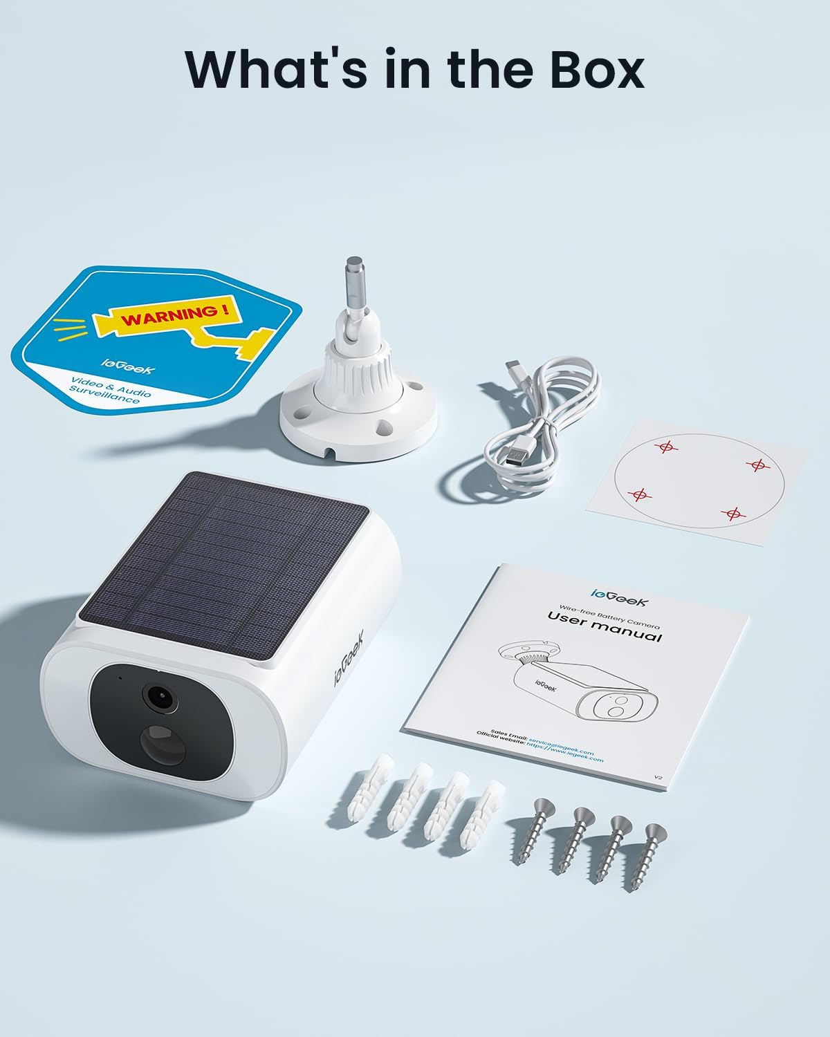 【No Subscription Storage & Privacy First】ieGeek outdoor camera wireless does not require any monthly fees. We provide lifetime free basic cloud storage (6s motion detection video recording, storage for 30 days) and up to 128G local memory card video recording (not included), protecting your safety and wallet. ieGeek security cameras uses the advanced encryption standard technology AES128,only you have access to it,ensuring absolute privacy.