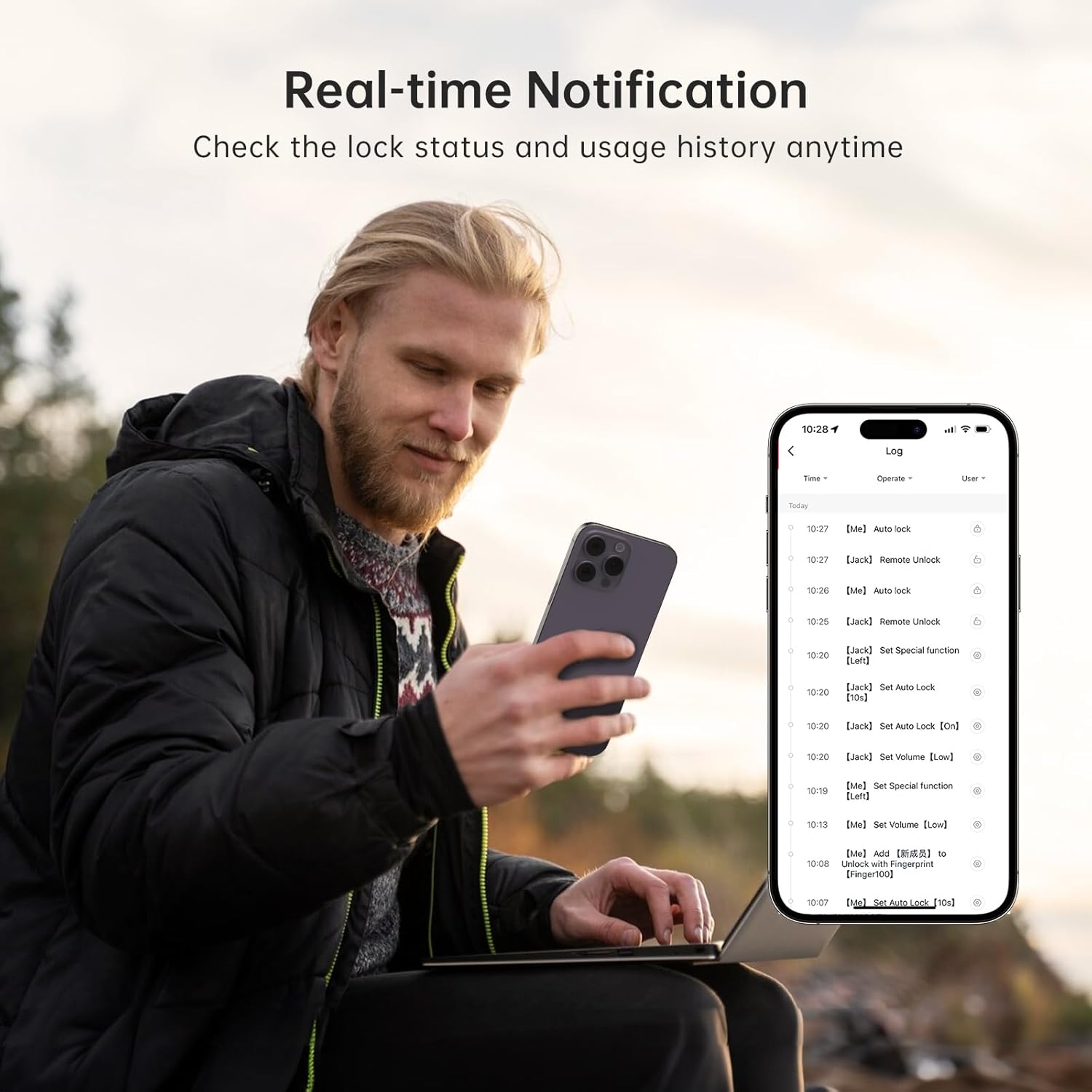 WiFi Remote Access: Our smart WiFi deadbolt, paired with an additional 2.4GHZ WiFi gateway, allows you to remotely lock and unlock your door. Enjoy the convenience of Receive real-time notifications, remotely share or modify passcodes for visitors, and view lock history , check door electric usage logs.