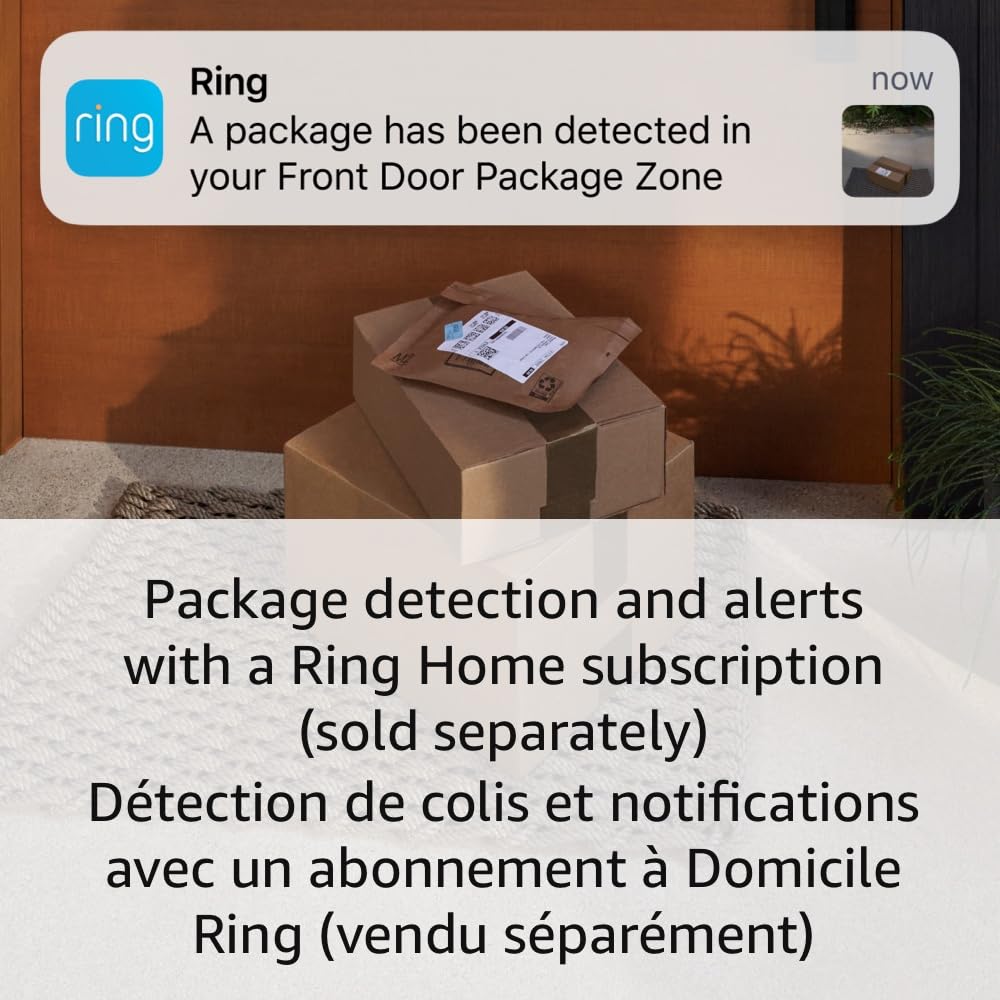 Person + Package Alerts — Know when a package is delivered with Package Alerts, an exclusive Ring Home subscription feature (sold separately) that notifies you when your package is detected within a specified zone.