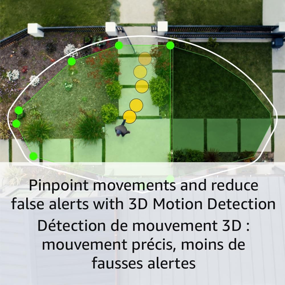3D Motion Detection — Configure Bird’s Eye Zones up to 30′ away on an overhead map of your property to pinpoint movement only where it matters.