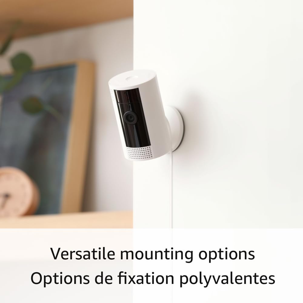 Versatile mounting options — Find the perfect angle on a table, or mount up high with the flexible swivel mount. Indoor Cam is plug-in, making it easy to move where you need it.