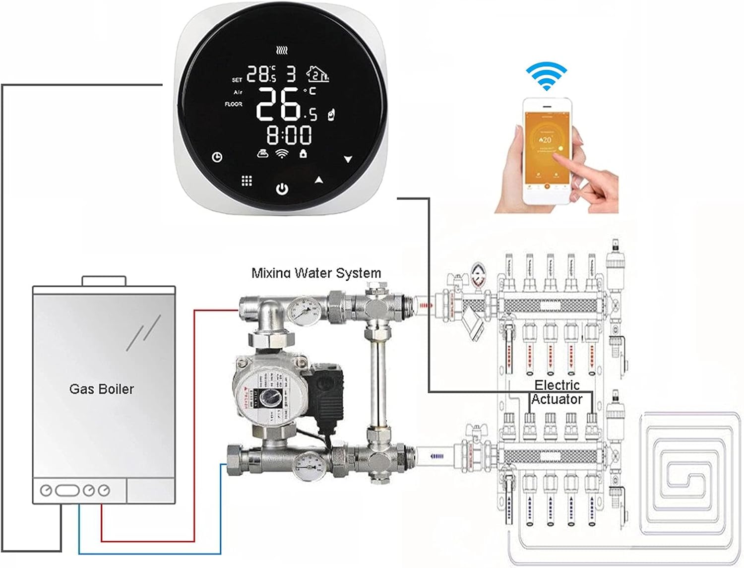 Smart Thermostat for Home App Control, Programmable WiFi Digital Thermostat 16A Temperature Controller for Water Electric Floor Heating Water Gas Boiler (AC90 to 240V)