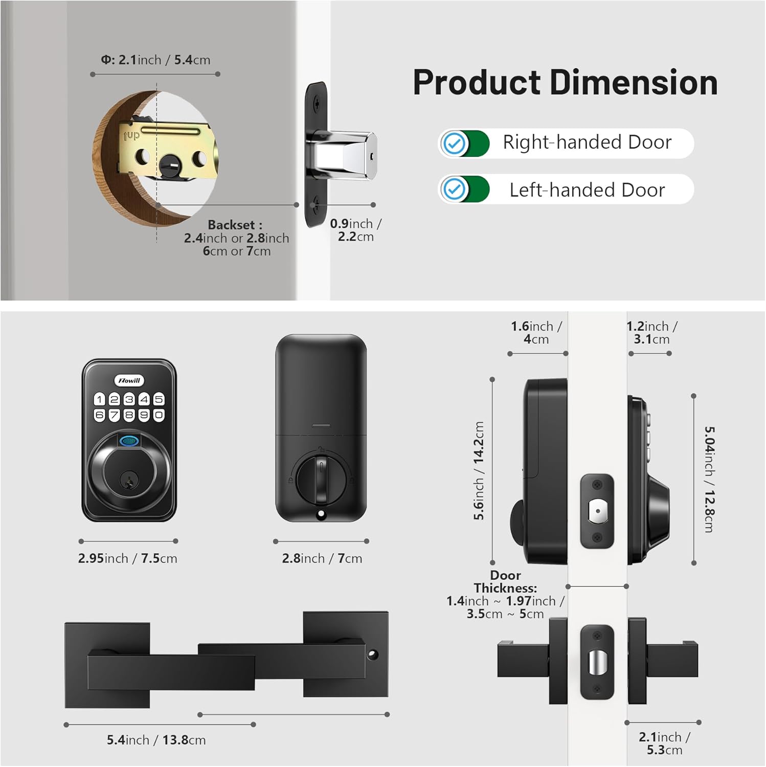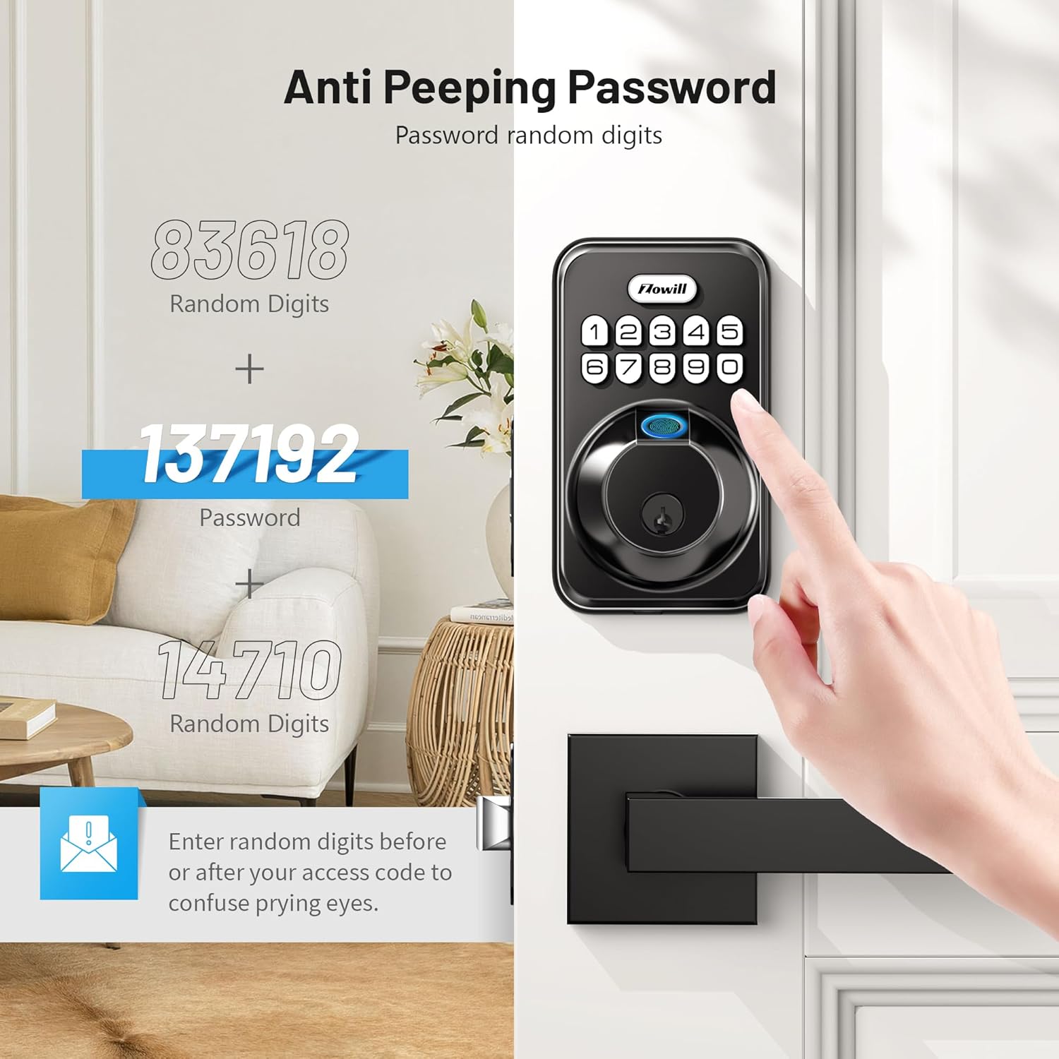 Zowill Fingerprint Door Lock, Keypad Door Lock with 2 Handles, Keyless Entry, Auto Lock, Anti-Peeping Password, Electronic Smart Deadbolt, Front Door Handle Sets for Homes, Apartments, Easy to Install