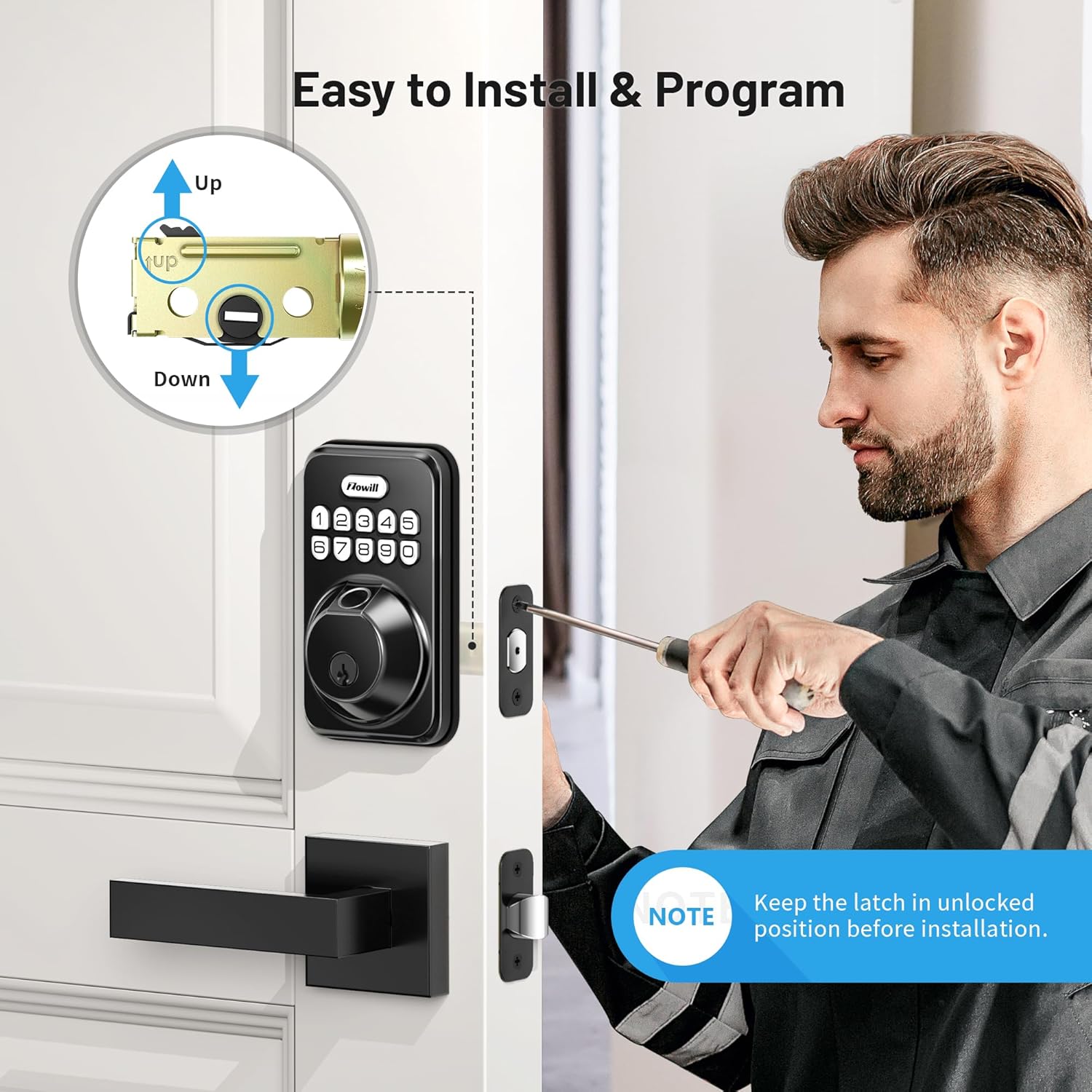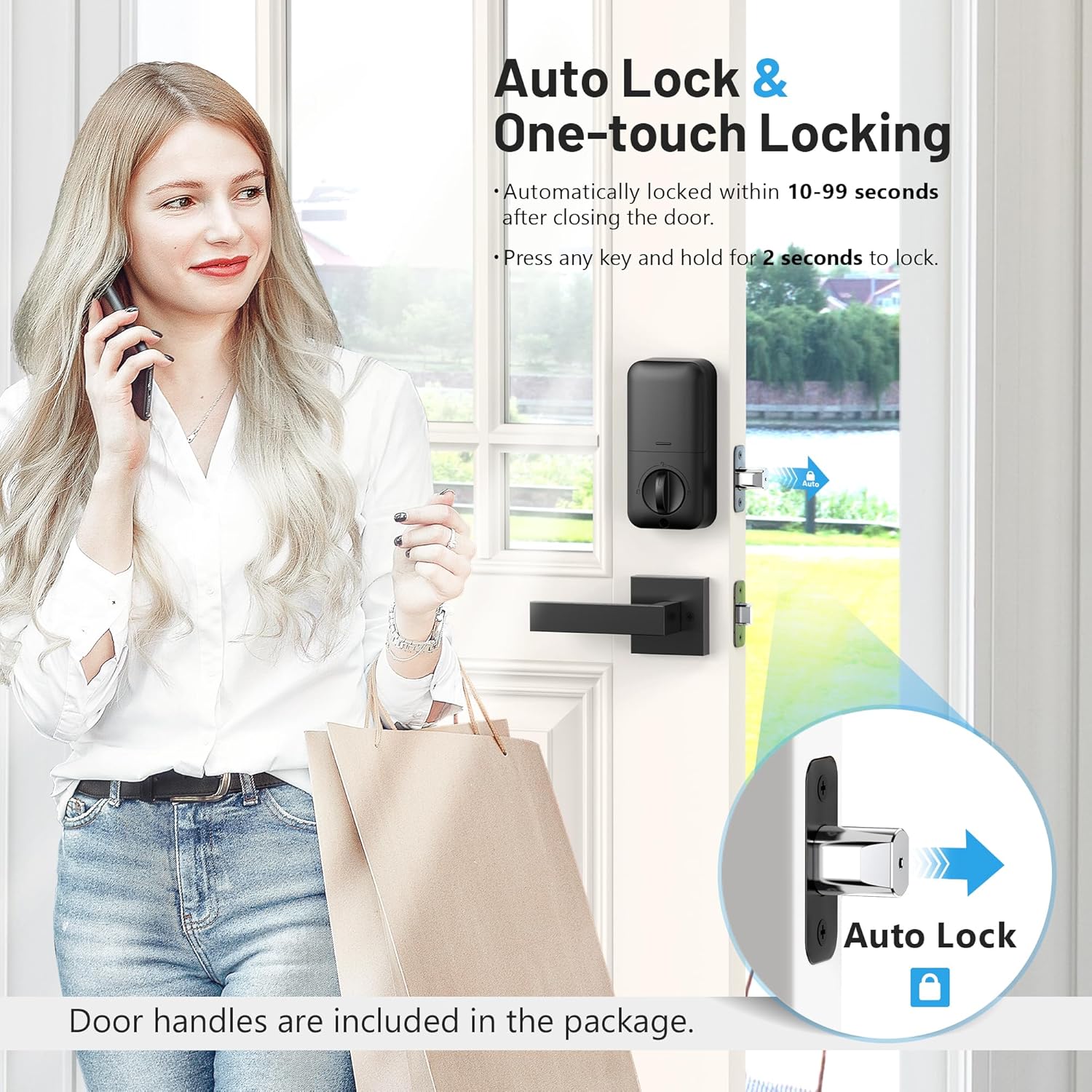 【Auto-Lock & One-touch Lock】: Always forget to lock the door? This keypad deadbolt enables automatic locking for peace of mind, it automatically locks within 10-99 seconds of door closing, or instantly locks your door by pressing and holding any button for 2 seconds when going out.